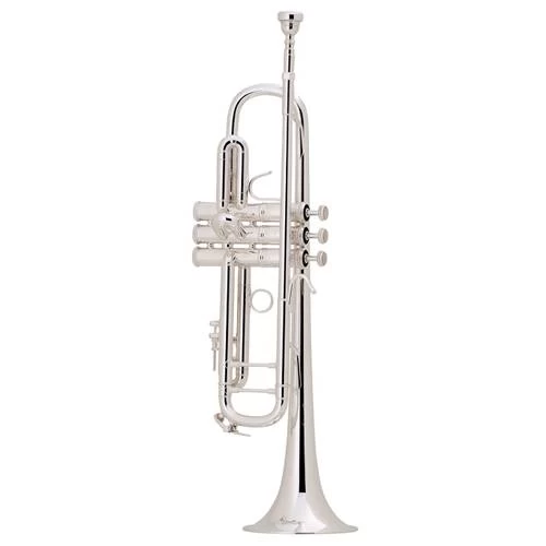The Bach 180 series trumpets are the number one selling professional trumpets in the world. The 180S37 features a #37 one-piece hand-hammered professional bell that produces a warm sound with great projection allowing this instrument to work well in multiple musical settings—from jazz to concert or solo playing. The #25 leadpipe allows for slight resistance that is effective in centering tone production. The silver-plate finish provides a controlled brilliance to the overall sound. These features combined with a .459″ medium-large bore allow the player to produce a well-rounded sound well suited for all types of music.
