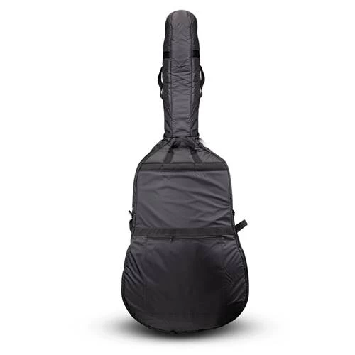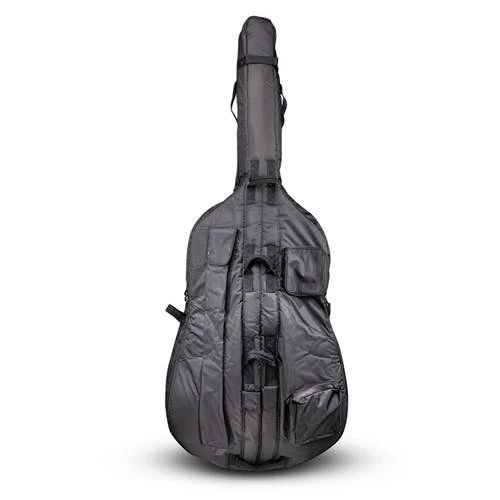 Generously padded black canvas bass bag by Eastman. 9 handles 5 pockets for bow, music, endpin, rosin, and accessories YKK zippers 183cm/72” long