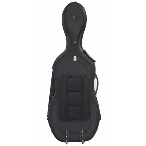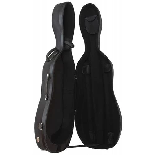 Filling the space between a soft bag and hard shell case, this offers a bit of both. Whereas the shell is stiff enough to protect your cello, it does have some give which gives it a more friendly feel, at an attractive price. Semi-rigid shell Exterior black canvas finish Interior soft black fabric 2 magnetic bow holders Neck restraint Music pocket Interior rosin pocket Heavy duty zippers 2 detachable backpack straps Combination zipper lock