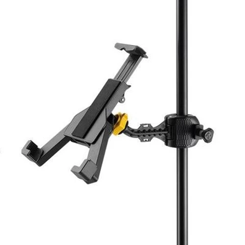 The HERCULES Tablet Holder DG305B features its versatile design to fit 7″ – 12.1″ tablets and includes a full-covered clamp, suction cup and the EZ Adaptor. *The suction cup is designed to be used on flat horizontal non-porous surfaces only. (Microphone stand pictured not included).