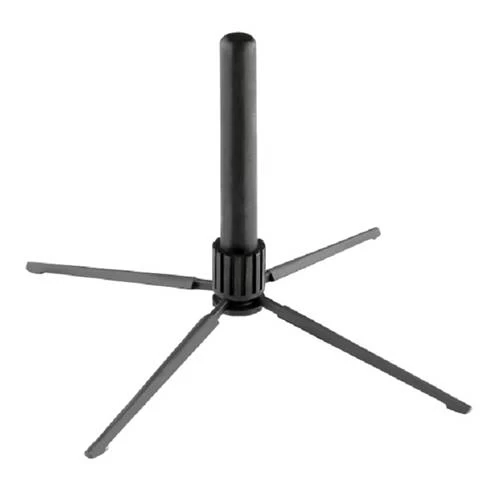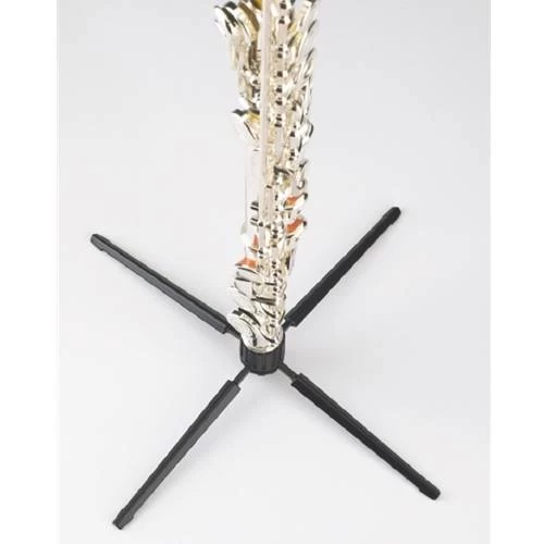 Unique, compact and extremely light flute stand with 4-leg base for most flutes and/or cross flutes. Plastic peg diameter 18 mm. The zinc die-cast legs ensure a very high stability. Folded up the stand fits in almost every pocket.