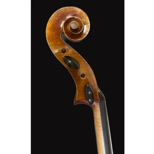 Made in Germany. Flamed Balkan maple back, sides and neck, with a select scraped Alpine spruce top. Beautiful dark brown spirit varnish and quality ebony fittings. Case or bag and bow are extra.