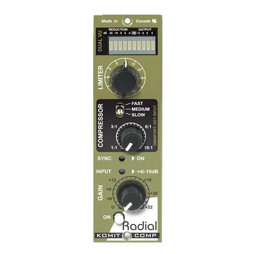 The Komit provides superior dynamics control that one would expect from a studio grade compressor/limiter, along with vintage character and tone to help your tracks stand out in the mix. A transparent VCA compressor is easily configured with a three-position switch to set the speed of the attack & release times, a variable compression ratio, and a makeup gain control. This is augmented with an old school diode-bridge clipping limiter, with ten settings that increasingly clip the input signal for results that range from subtle analog clipping to over-the-top distortion. The limiter can also be set for brick wall operation to prevent overloading digital recorder inputs, and both the inputs and outputs feature vintage style Hammond broadcast transformers add extra warmth to the signal path.