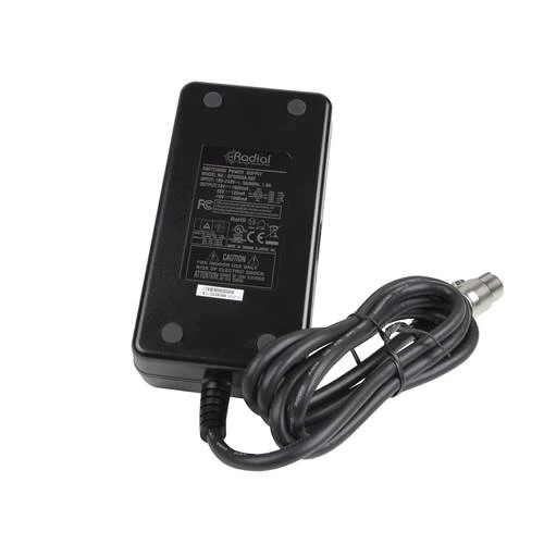 Our Radial universal 5 pin power supply is designed for use with Workhorse power racks and rackmount Radial products that require a higher level of current for operation. The power supply features a universal power cord input for ease of use in any region worldwide. This product provides +-16V, +48VDC, 1.6A.