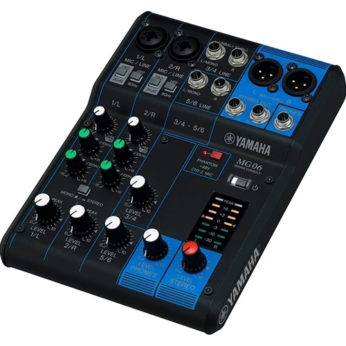 The MG06 mixer has stereo XLR outs for connecting to your PA system or monitor speakers. It also has a 1/4″ headphone output with level control for personal monitoring, as well as TRS 1/4″ stereo outs for sending to powered speakers, amplifiers or devices such as digital recorders.